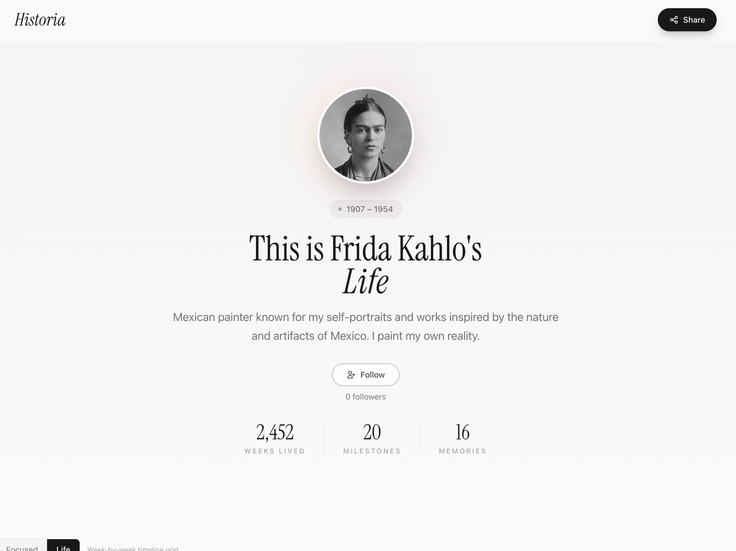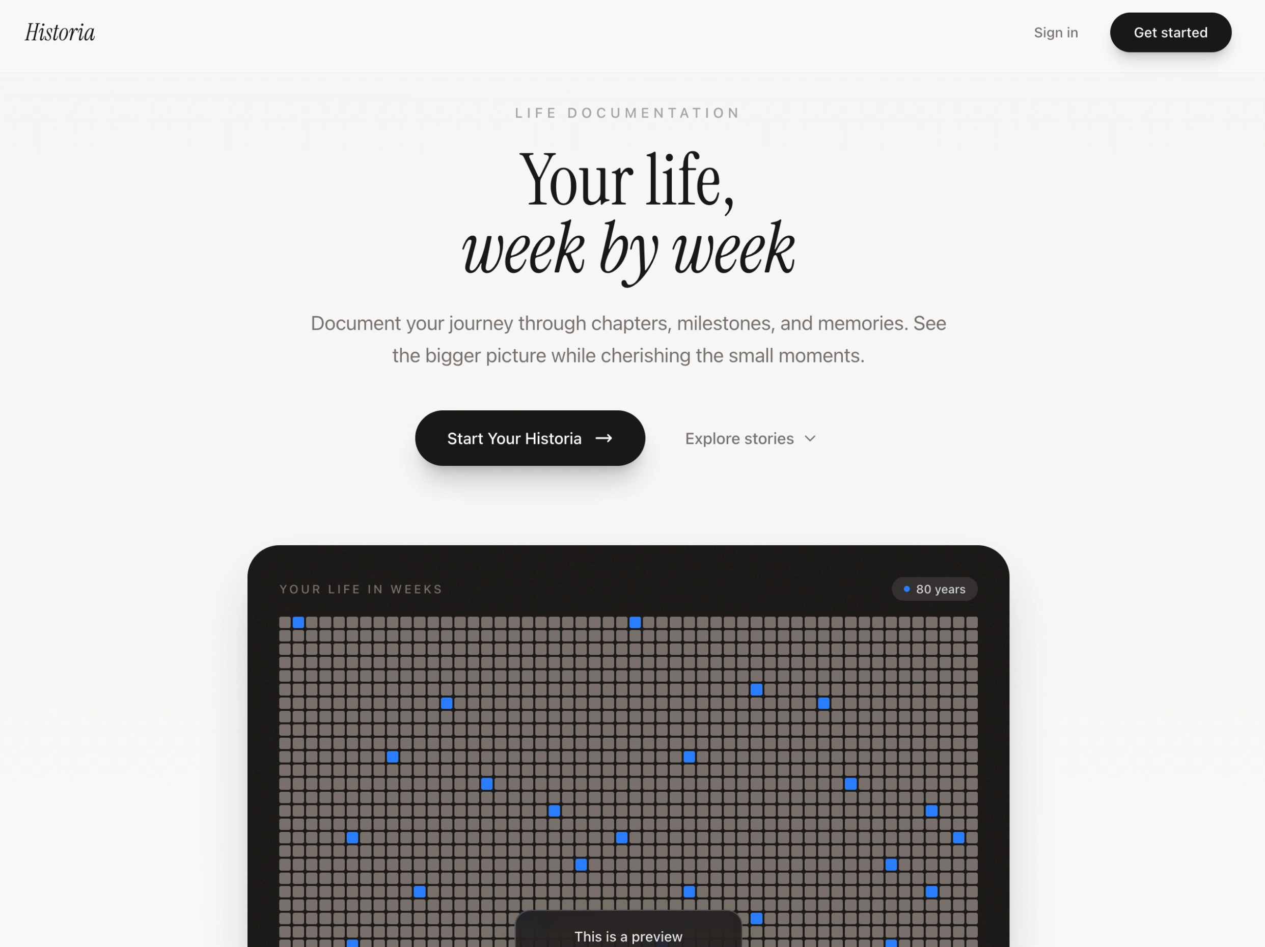 A life documentation app that visualizes your journey through chapters, milestones, and memories on a week-by-week grid. Features an AI Life Builder that creates your complete timeline from a simple conversation, and Tributes that allow you to create profiles for loved ones and collaborate on shared memories with others.